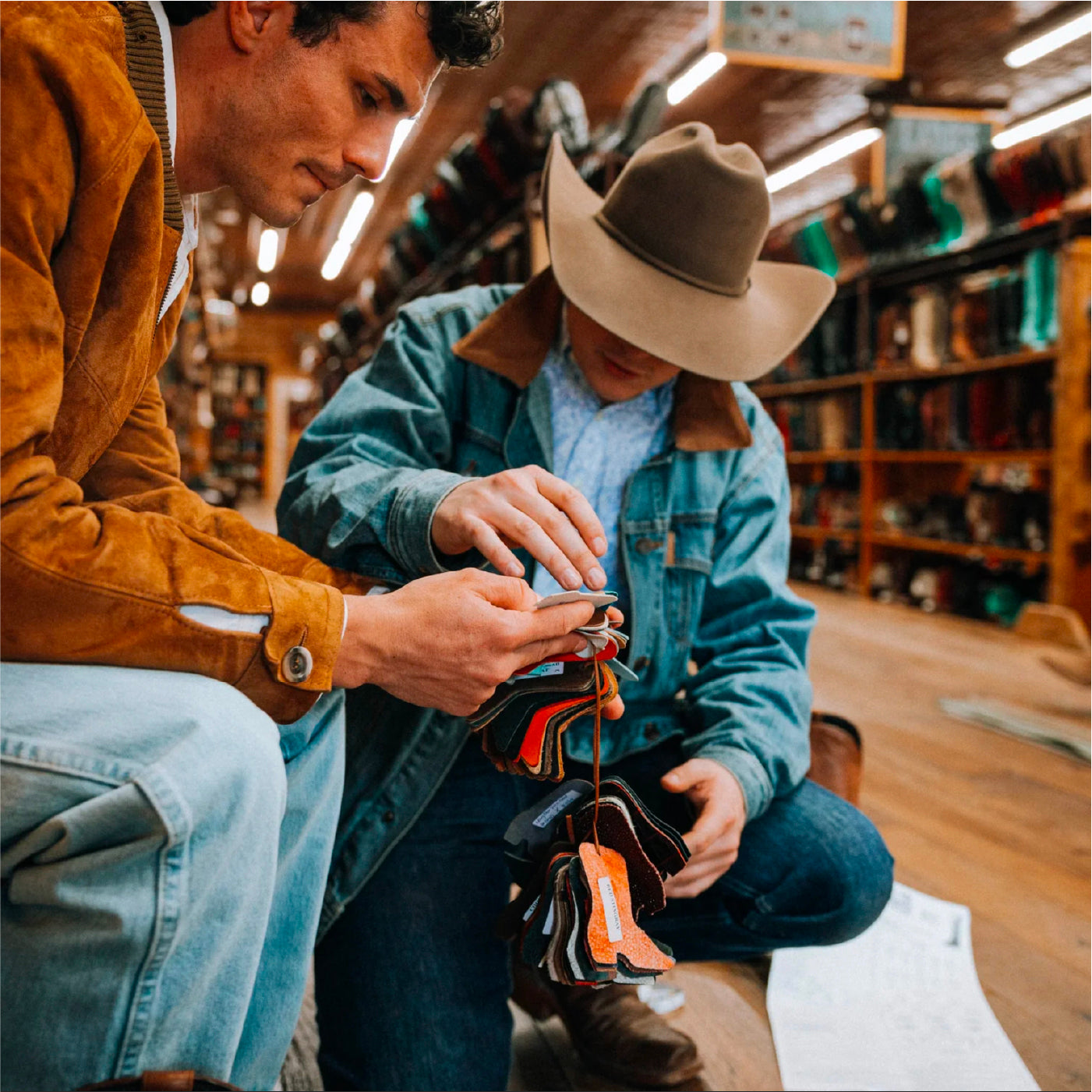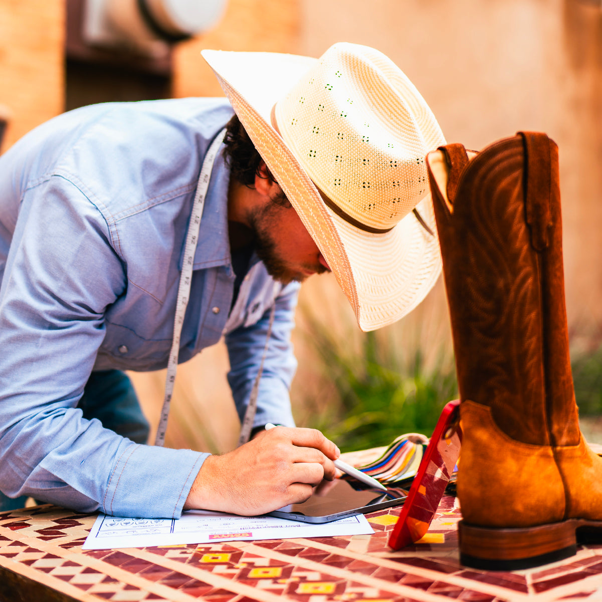 Designing your own boots is a remarkable experience. Our library of boot shapes, material swatches and patterns allows you to touch and feel your choices while our designer brings it to life in real time.