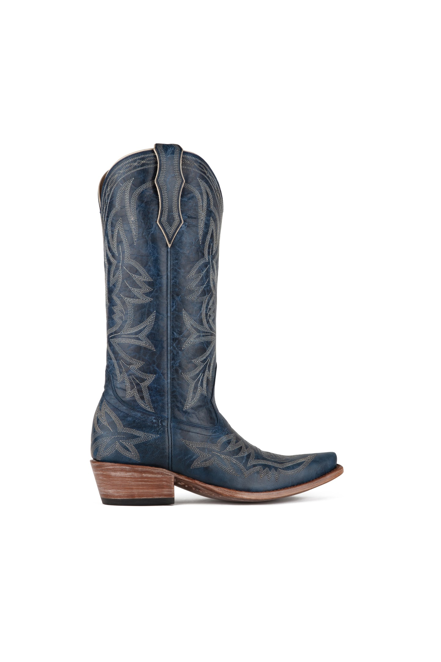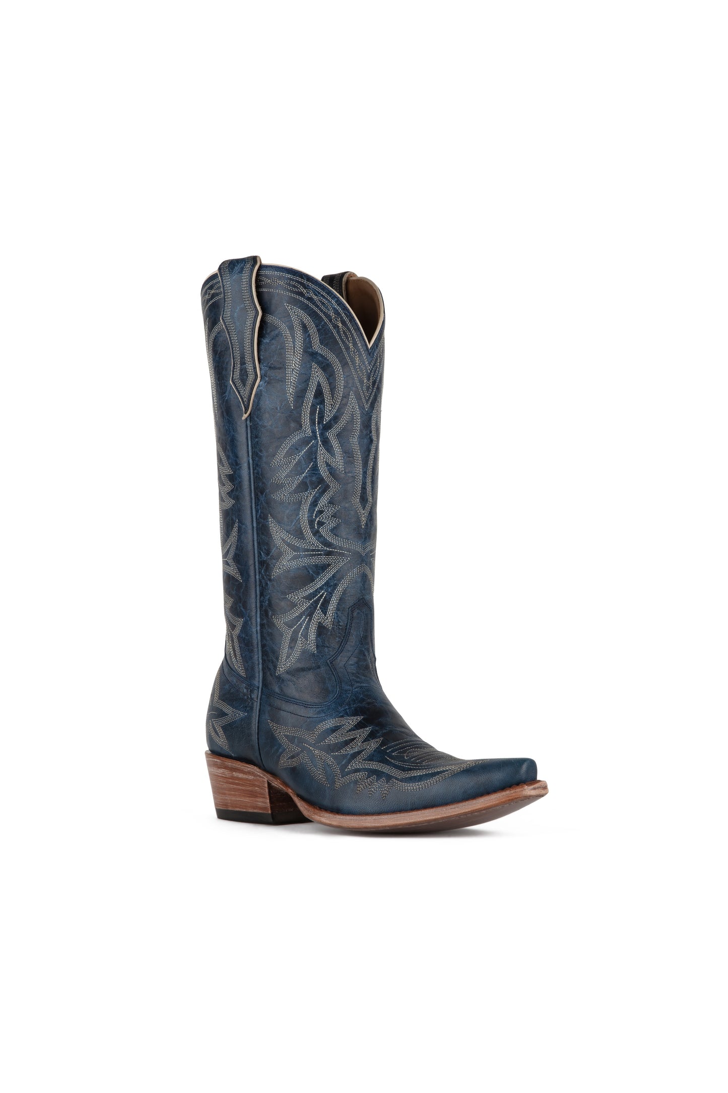 A timeless, classic style with a modern twist. Features a snip-toe, 1-3/4 western heel and a leather sole. Made from goat leather (shaft/vamp). Shaft height is 13” with elegant pull straps and a 5 row stitch pattern. Comes in an assortment of colors.