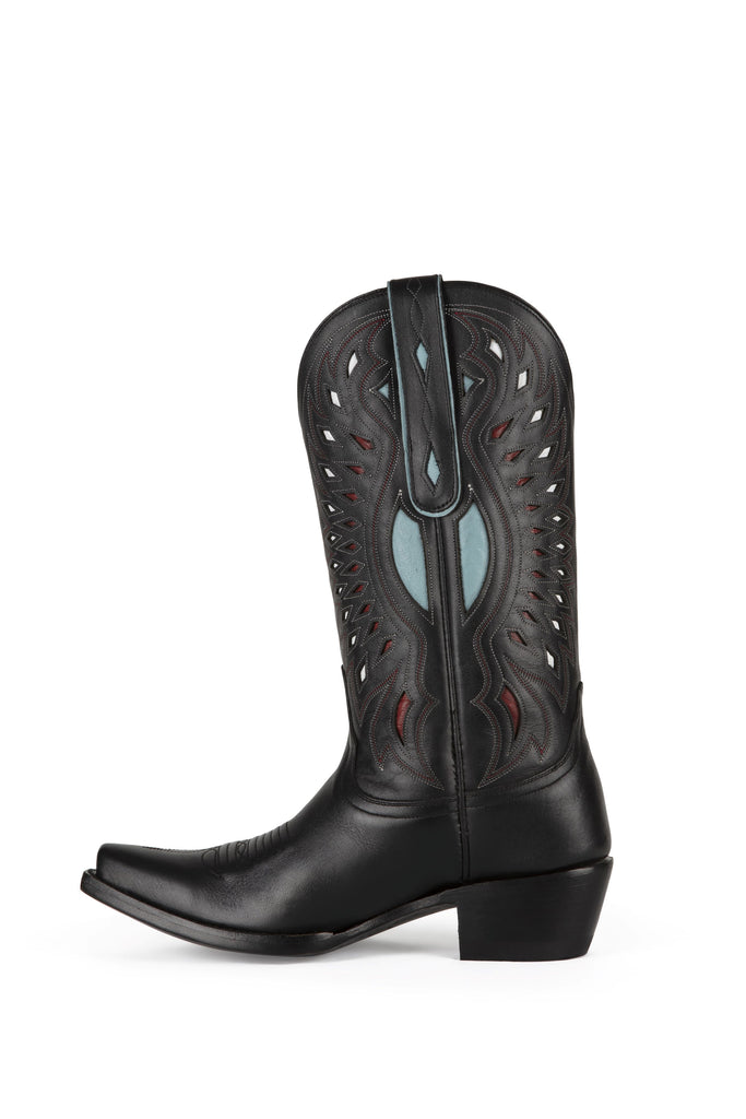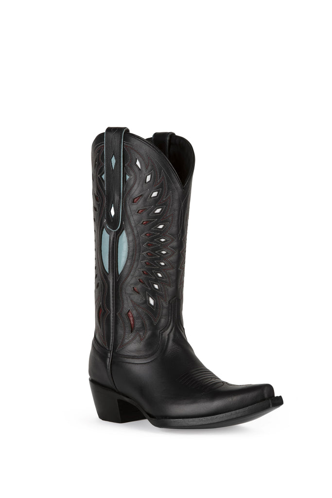 Another women's boot with a little bit of fire - the Haden features a winged firebird on the shaft with decorative mule-ear pull straps. This boot is comfortable going under a pair of jeans with a little flare for having skinny jeans tucked into them. Haden is the perfect cross of modern and traditional. The calf leather vamp is rounded out by a traditional toe medallion. Made in Mexico.